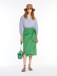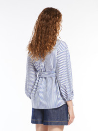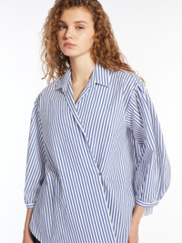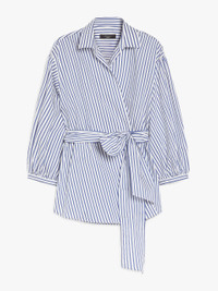 DETAILS Wrap shirt made of cotton and silk canvas. The style features a loose silhouette with a pointed collar, crossover V neck and three-quarter length balloon sleeves with dropped shoulders and cuffs. Finished with a yoke and pleat at the back, it has a sash to tie at the waist. COMPOSITION AND CARE 82% cotton, 18% silk. Do not wash; do not bleach; do not tumble dry; cool iron; professionally dry clean perchloroethylene - mild process; do not wet clean.; wash the garment while it is fastened.; turn the articles inside out before washing.; contains non-textile parts of animal origin. Distributed by Max Mara S.r.l., registered office in Reggio Emilia (Italy), Via Giulia Maramotti 4, 42124 (IT)