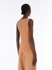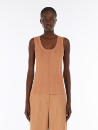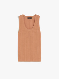 DETAILS Close-fitting sleeveless top made in a viscose blend yarn. The style features an irregular ribbed texture that accentuates the feminine silhouette, a wide round neckline and wide shoulder straps. COMPOSITION AND CARE 90% viscose, 10% polyamide. Hand wash cold; do not bleach; do not tumble dry; flat drying in the shade; cool iron; professionally dry clean perchloroethylene - mild process; do not wet clean.; iron with a cloth between.; using neutral detergent. Distributed by Max Mara S.r.l., registered office in Reggio Emilia (Italy), Via Giulia Maramotti 4, 42124 (IT)