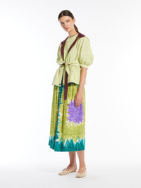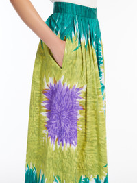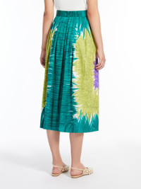 DETAILS Wide midi skirt in pure cotton poplin with a placement print and side inset pockets. The pleated pattern at the waist adds movement. Back zip fastening. The piece is part of the new “A Weekend with Ashley Park” capsule. Inspired by a Mediterranean summer and Parisian elegance, the collection offers versatile and timeless pieces designed to complement your style and wear with ease at any time of the day. A celebration of modern glamour. COMPOSITION AND CARE 100% cotton. Machine wash cold delicate cycle; do not bleach; do not tumble dry; line drying in the shade; cool iron; professionally dry clean perchloroethylene - mild process.; wash the garment while it is fastened.; turn the articles inside out before washing. Distributed by Max Mara S.r.l., registered office in Reggio Emilia (Italy), Via Giulia Maramotti 4, 42124 (IT)