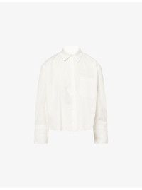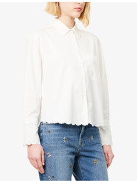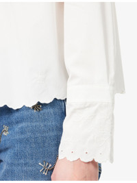 PRODUCT DETAILS - Weekend Max Mara cotton shirt - 100% cotton - Button fastening - Regular fit, collar, long sleeves, buttoned cuffs, patch pocket at chest, broderie scallop trims - Dry clean only - True to size - Size UK 8: length 21in / 53cm - Model is 5ft 10in/1.78m and wears a size UK 8 - Lightweight, non-stretch Ref: R04552940