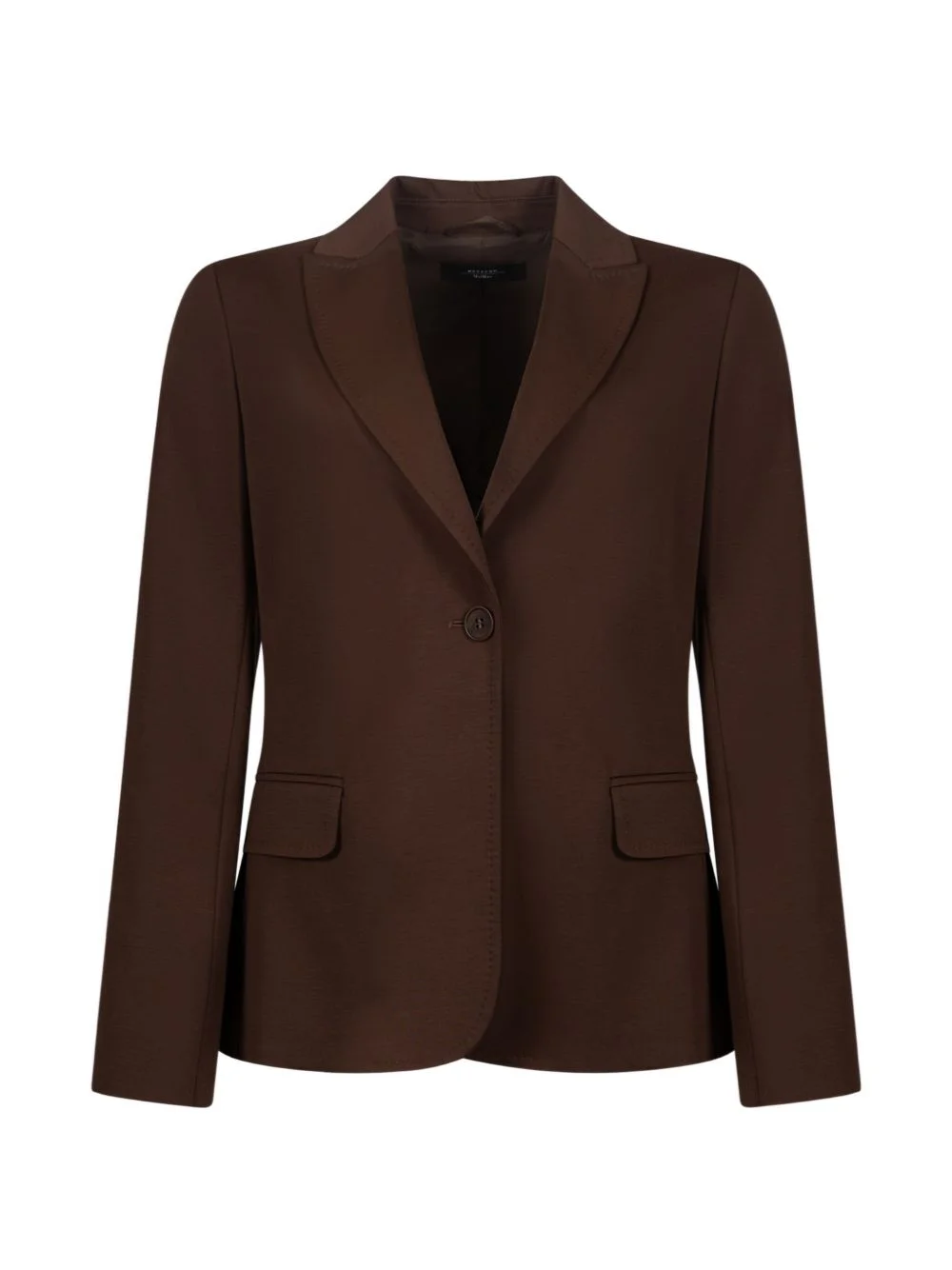 collared single-breasted jacket Highlights - Brown - Collared - Single-breasted - One button - Flap pockets - Long sleeves Imported Composition Polyamide 35%, Lyocell 27%, Viscose 27%, Spandex/Elastane 11% Washing instructions Read Manufacturer Guidelines