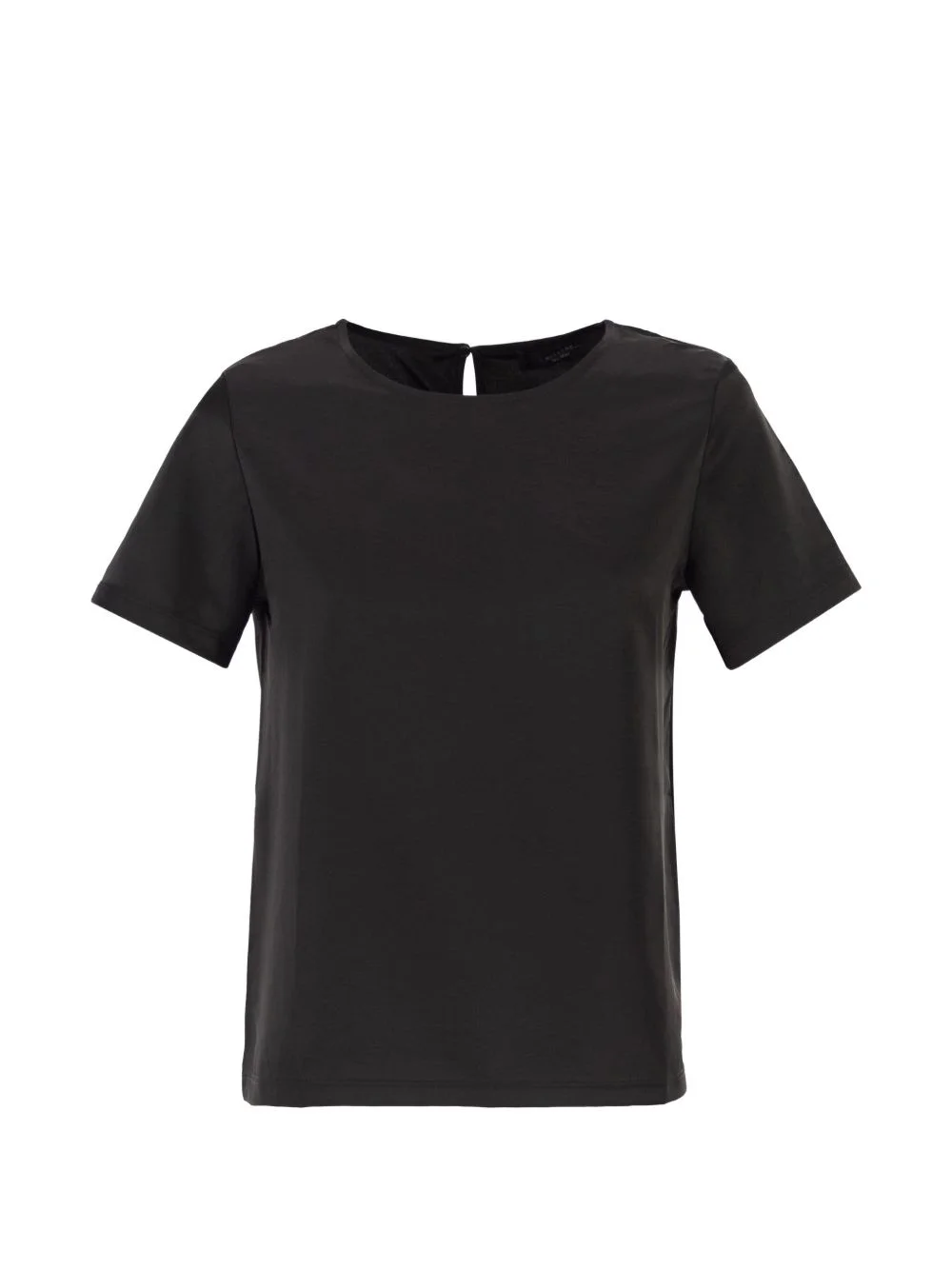 contrasting texture T-shirt Highlights - Black - Textured back - Round neck - Short sleeves - Teardrop fastening Made in Italy Composition Polyamide 35%, Lyocell 27%, Viscose 27%, Spandex/Elastane 11% Washing instructions Read Manufacturer Guidelines