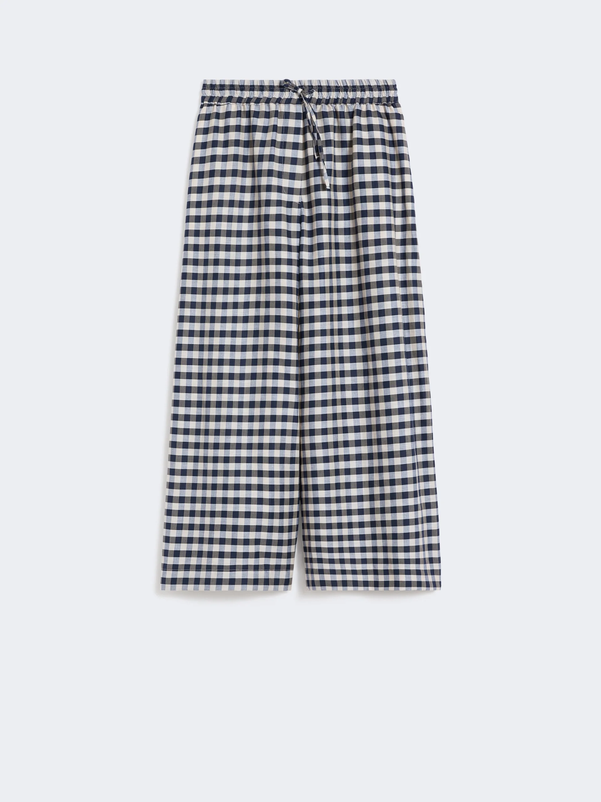 DETAILS Loose, flowing trousers cropped at the ankle. - Regular fit - Cotton and ramie Batavia trousers - All-over printed collection motif - Elasticated waist with drawstring - Side inset pockets COMPOSITION AND CARE 59% cotton, 41% ramie. Hand wash cold (40°c max); do not bleach; do not tumble dry; line drying in the shade; cool iron; professionally dry clean perchloroethylene - mild process; do not wet clean. Distributed by Max Mara S.r.l., registered office in Reggio Emilia (Italy), Via Giulia Maramotti 4, 42124 (IT) Collection: Weekend Max Mara Product code: 5131176206001 - WKDDONARE
