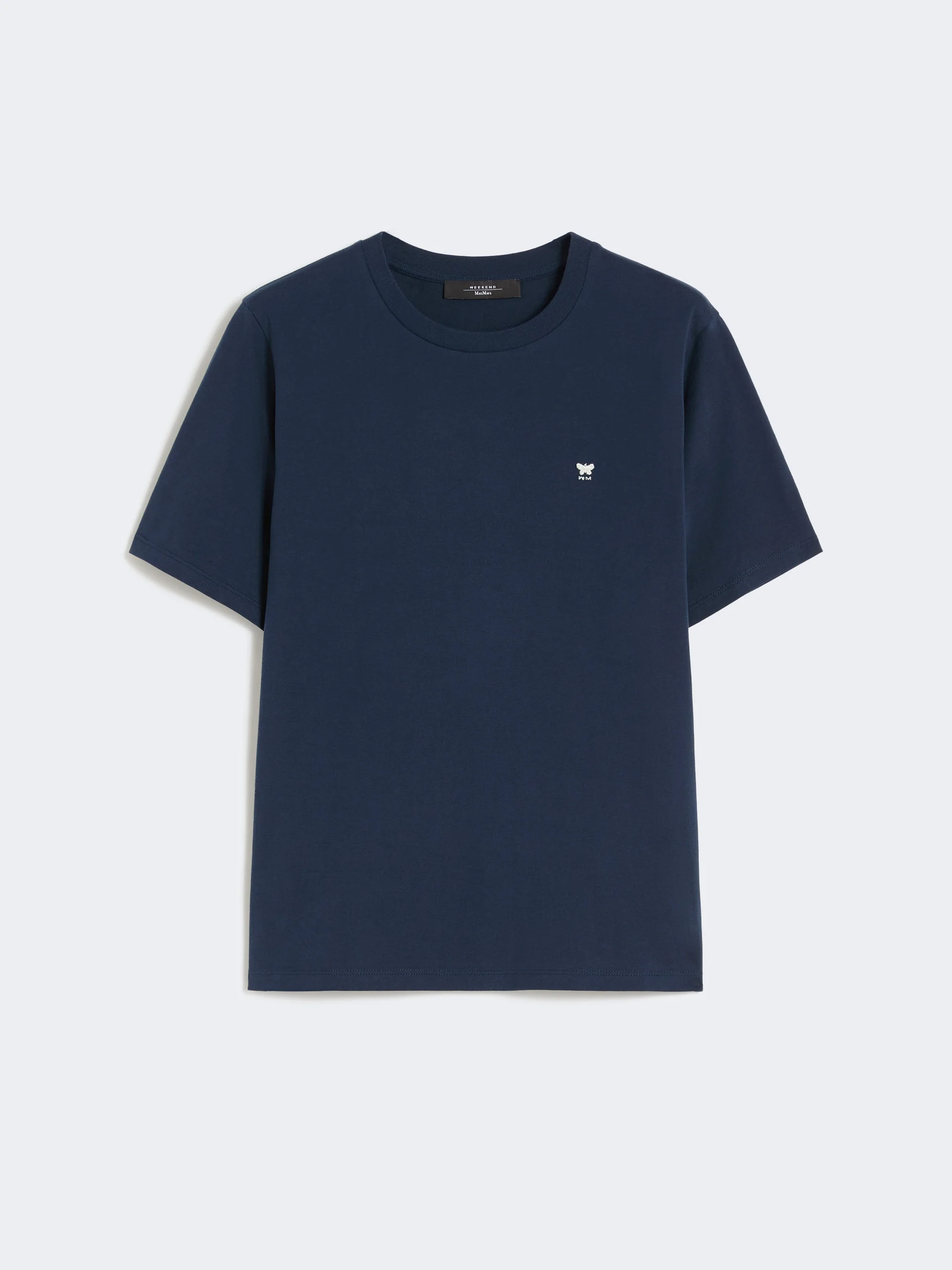 DETAILS Regular-fit T-shirt customised with small embroidered butterfly logo detail on the chest. - Pure cotton jersey T-shirt - Straight fit with side slits - Rib-knit crew neckline - Short set-in sleeves COMPOSITION AND CARE Jersey fabric 100% cotton; - exclusive of embroideries. Machine wash cold delicate cycle; do not bleach; do not tumble dry; flat drying in the shade; cool iron; professionally dry clean perchloroethylene - mild process; professional wet cleaning - very mild process.; iron with a cloth between.; using neutral detergent. Distributed by Max Mara S.r.l., registered office in Reggio Emilia (Italy), Via Giulia Maramotti 4, 42124 (IT) Collection: Weekend Max Mara Product code: 5971036106004 - WKDVENACO