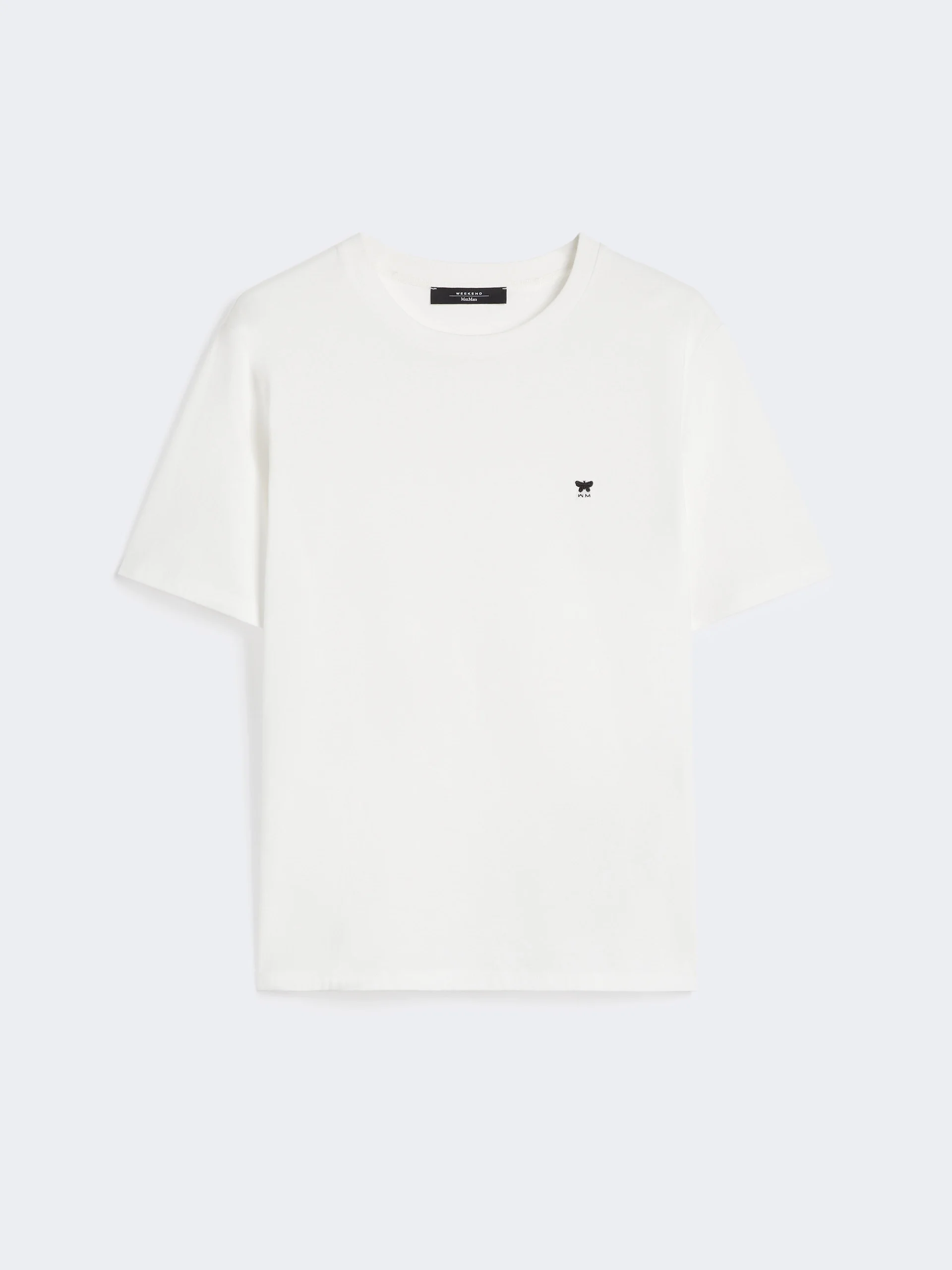 DETAILS Regular-fit T-shirt customised with small embroidered butterfly logo detail on the chest. - Pure cotton jersey T-shirt - Straight fit with side slits - Rib-knit crew neckline - Short set-in sleeves COMPOSITION AND CARE Jersey fabric 100% cotton; - exclusive of embroideries. Machine wash cold delicate cycle; do not bleach; do not tumble dry; flat drying in the shade; cool iron; professionally dry clean perchloroethylene - mild process; professional wet cleaning - very mild process.; iron with a cloth between.; using neutral detergent. Distributed by Max Mara S.r.l., registered office in Reggio Emilia (Italy), Via Giulia Maramotti 4, 42124 (IT) Collection: Weekend Max Mara Product code: 5971036106001 - WKDVENACO