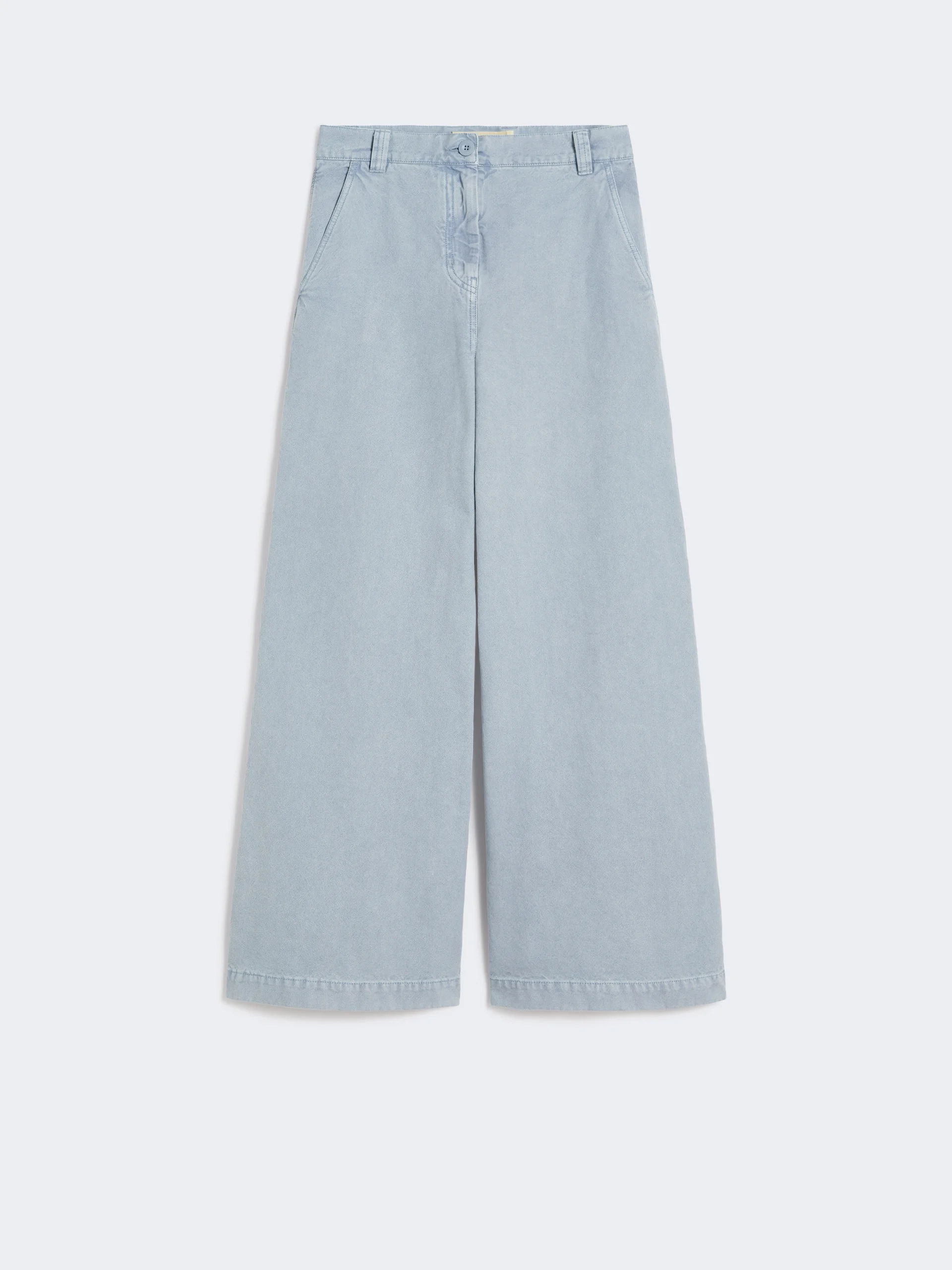 DETAILS Wide-leg trousers featuring workwear details and carpenter pockets on the leg. - Trousers in garment-dyed pure cotton canvas - Wide leg and mid-rise design - Fly-covered zip and enamel metal tack button fastening - Slant side pockets and patch rear pockets - Six belt loops on the waist - Branded label on the right rear pocket COMPOSITION AND CARE 100% cotton. Machine wash cold delicate cycle; do not bleach; do not tumble dry; line drying in the shade; cool iron; professionally dry clean perchloroethylene - mild process.; wash the garment while it is fastened.; wash separately.; do not iron the buttons.; protect buttons before washing.; turn the articles inside out before washing.; dyed article. the unevennes of the dye and the pressing form its characteristic.; this item may leave colour stains on brightly-coloured garments. Distributed by Max Mara S.r.l., registered office in Reggio Emilia (Italy), Via Giulia Maramotti 4, 42124 (IT) Collection: Weekend Max Mara Product code: 5131136106002 - WKDSKIPPER
