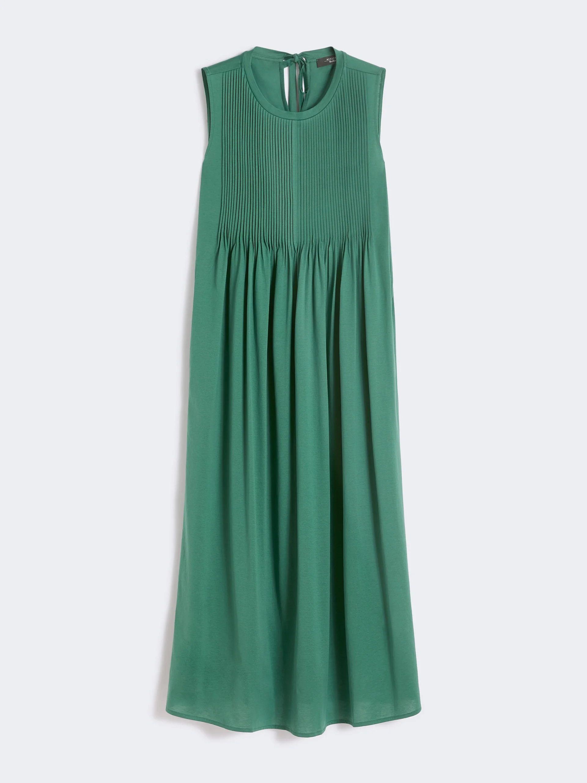DETAILS Long sleeveless dress, featuring a pleated motif on the front that gives movement and volume to the garment. - Regular fit with full skirt - Pure cotton-jersey dress - Crew neck - Wide shoulder straps - Back teardrop opening with self-ties at the back of the neck - Unlined COMPOSITION AND CARE 100% cotton. Machine wash cold delicate cycle; do not bleach; do not tumble dry; flat drying in the shade; cool iron; professionally dry clean perchloroethylene - mild process; professional wet cleaning - very mild process.; iron with a cloth between.; do not iron pleated parts.; using neutral detergent. Distributed by Max Mara S.r.l., registered office in Reggio Emilia (Italy), Via Giulia Maramotti 4, 42124 (IT) Collection: Weekend Max Mara Product code: 5621026206010 - WKDRICORDO