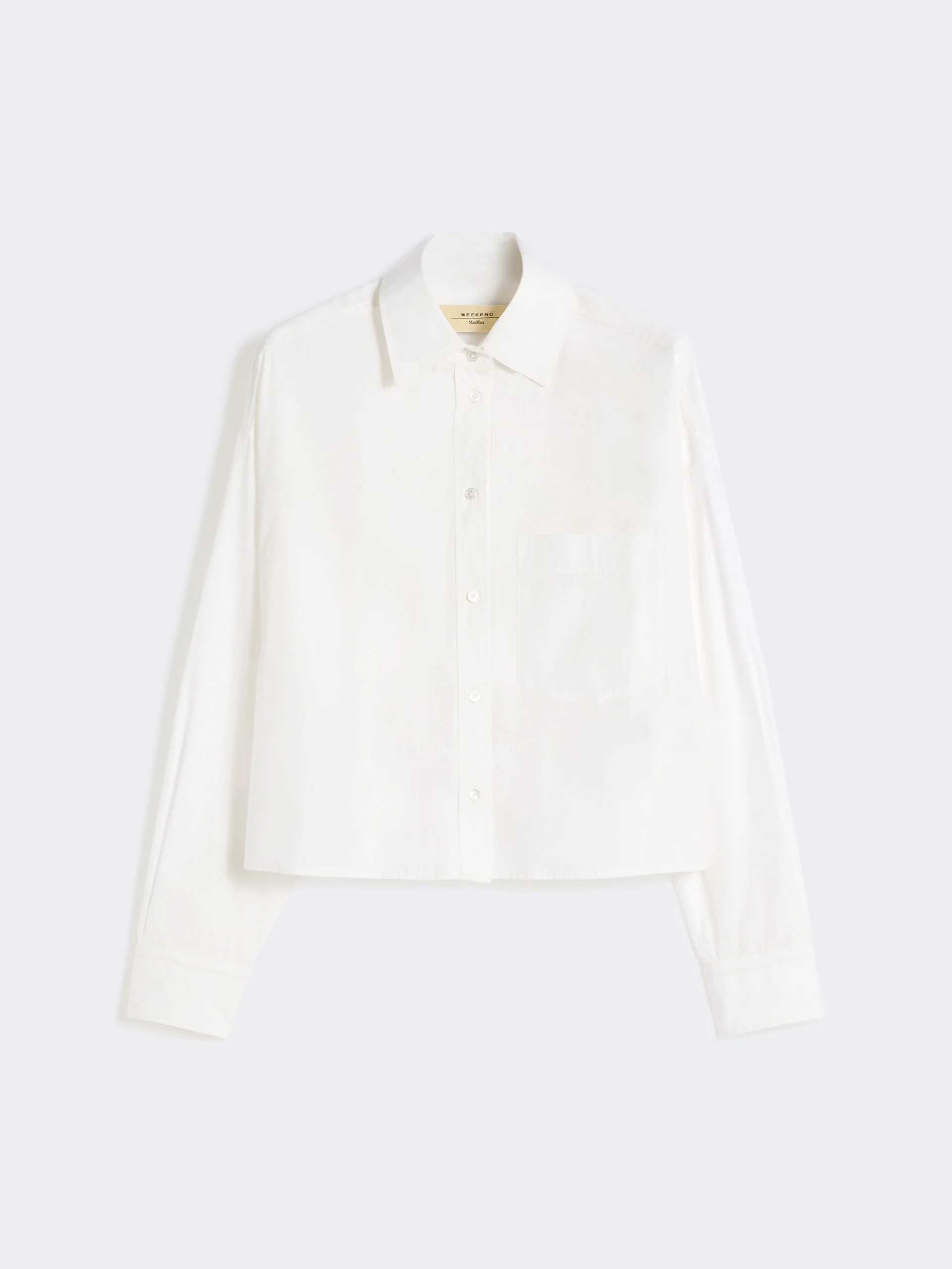 DETAILS Classic-inspired cropped shirt with pleat motif at the back and patch chest pocket on the left. - Main fabric made of organic cotton - Shirt in pure cotton poplin fabric - Straight fit with side slits - Shirt collar and double cuffs - Drop-shoulder long sleeves - Mother-of-pearl button fastening on the front - Darted rear yoke and a boxy hem COMPOSITION AND CARE 100% cotton. Do not wash; do not bleach; do not tumble dry; cool iron; professionally dry clean perchloroethylene - mild process; do not wet clean.; wash the garment while it is fastened.; after washing fix the pleats by ironing them.; turn the articles inside out before washing.; contains non-textile parts of animal origin. Distributed by Max Mara S.r.l., registered office in Reggio Emilia (Italy), Via Giulia Maramotti 4, 42124 (IT) Collection: Weekend Max Mara Product code: 5111096106001 - WKDEDEN