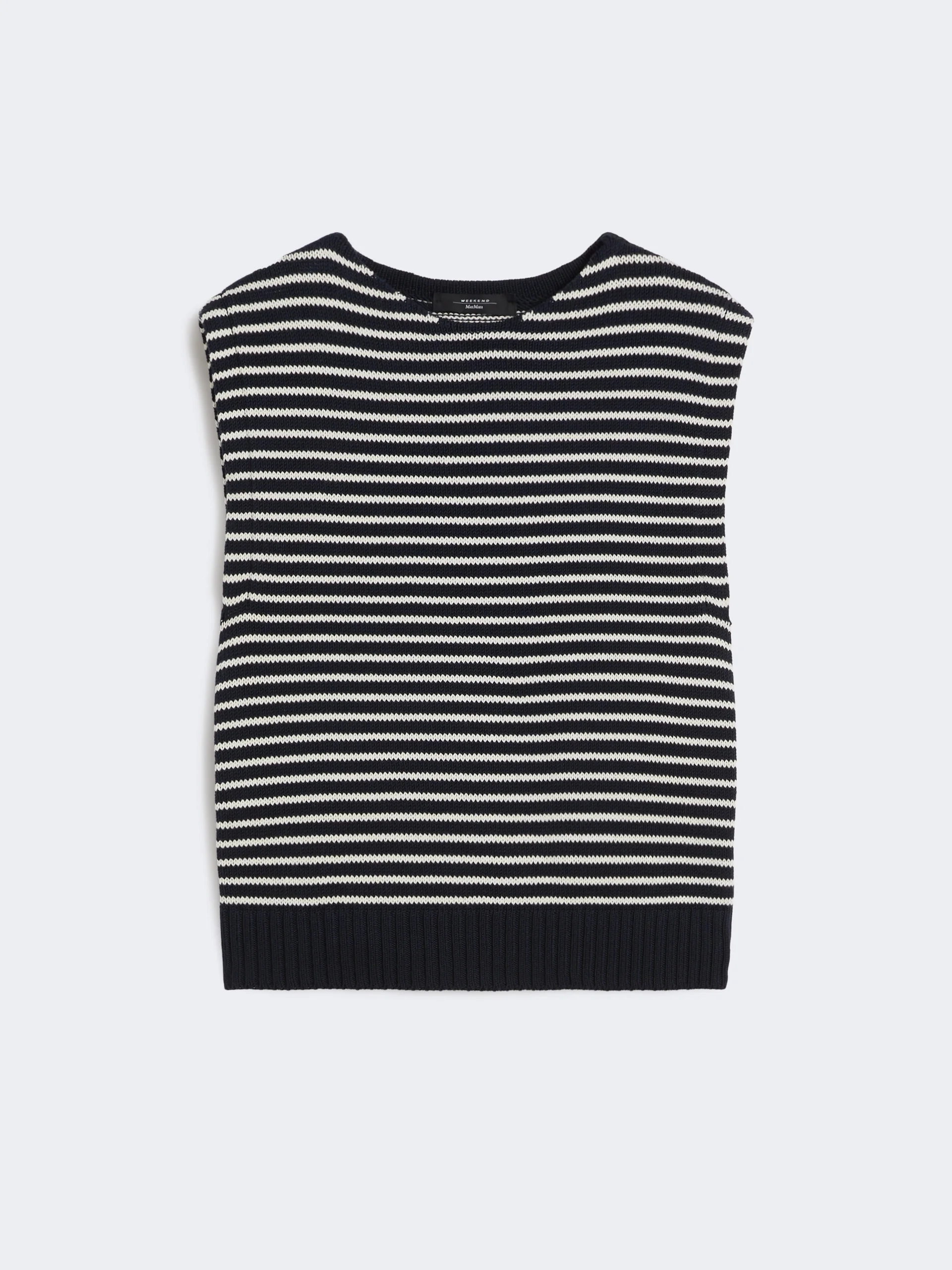 DETAILS Regular-fit waist-length gilet. - Gilet in stockinette-stitched cotton-blend yarn - Crew-neck - Slightly dropped shoulders - Rib-knit hem trim COMPOSITION AND CARE 91% cotton, 9% polyester. Hand wash cold (40°c max); do not bleach; do not tumble dry; flat drying in the shade; cool iron; professionally dry clean perchloroethylene - mild process; do not wet clean.; iron with a cloth between.; using neutral detergent. Distributed by Max Mara S.r.l., registered office in Reggio Emilia (Italy), Via Giulia Maramotti 4, 42124 (IT) Collection: Weekend Max Mara Product code: 5351016106010 - WKDLANDA