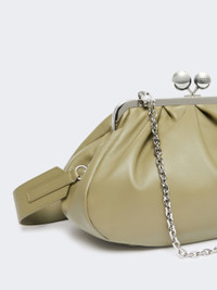 DETAILS Deconstructed Medium Pasticcino Bag. The long chain shoulder strap with leather pad detail and the short leather shoulder strap allow for handheld or crossbody use, and can both be removed via retractable hooks. Bag in soft and light Nappa sheepskin Striped fabric lining Internal storage pocket with branded label detail Branded metal Weekend Max Mara sphere clasp Size: 31 x 13 x 21 c COMPOSITION AND CARE Handbag in ram; lining in 100%polyester. Distributed by Max Mara S.r.l., registered office in Reggio Emilia (Italy), Via Giulia Maramotti 4, 42124 (IT)
