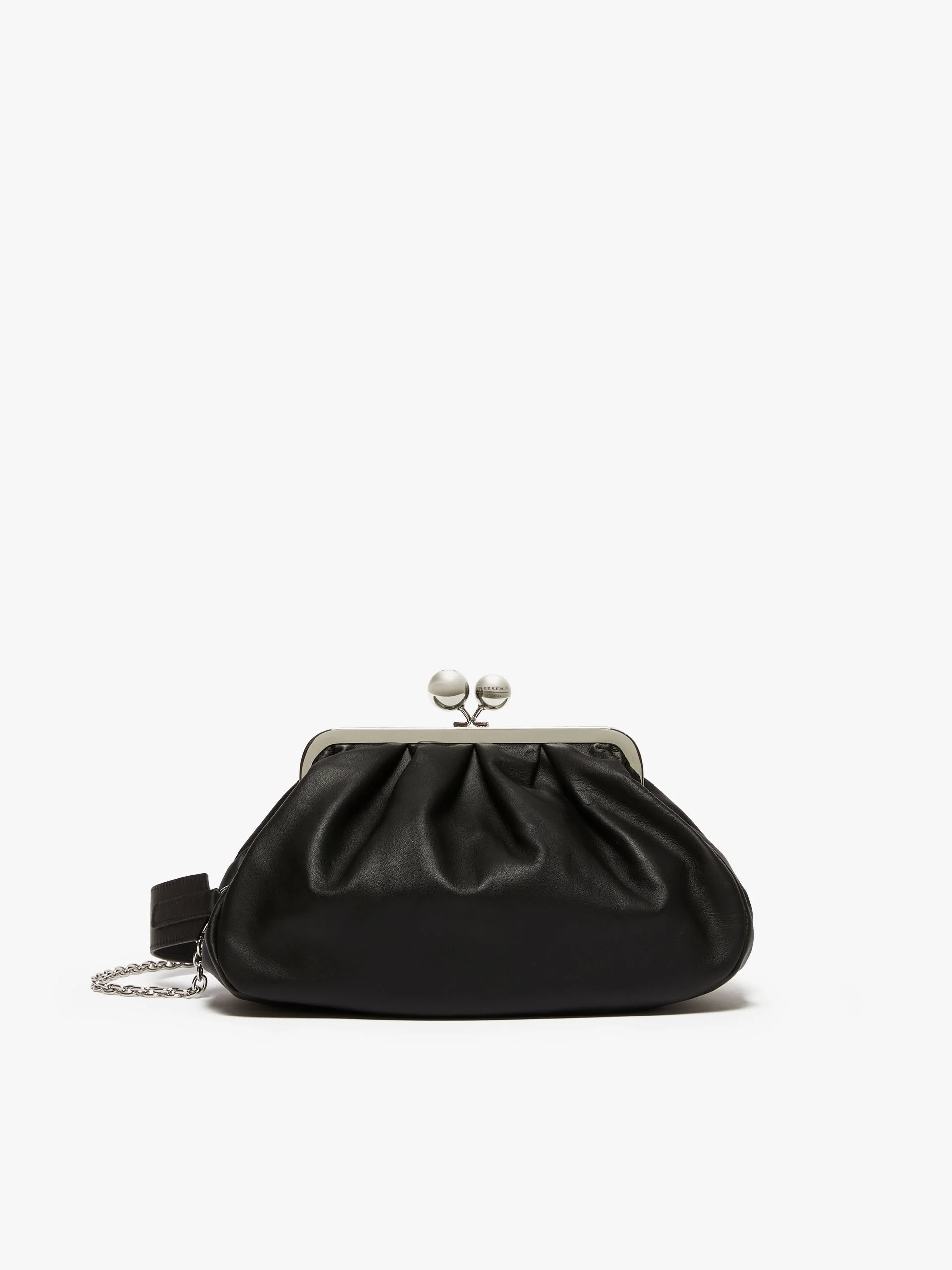DETAILS Deconstructed Medium Pasticcino Bag. The long chain shoulder strap with leather pad detail and the short leather shoulder strap allow for handheld or crossbody use, and can both be removed via retractable hooks. Bag in soft and light Nappa sheepskin Striped fabric lining Internal storage pocket with branded label detail Branded metal Weekend Max Mara sphere clasp Size: 31 x 13 x 21 c COMPOSITION AND CARE Handbag in ram; lining in 100%polyester. Distributed by Max Mara S.r.l., registered office in Reggio Emilia (Italy), Via Giulia Maramotti 4, 42124 (IT)
