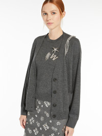 DETAILS Twin set in fine wool and cashmere yarn comprising a short-sleeved sweater and V-neck cardigan. The sweater boasts a regular fit and crew neckline, whilst the cardigan features a relaxed fit, dropped shoulders and patch pockets. Button fastening. Both garments are embellished with rib-knit trims. COMPOSITION AND CARE Knitted cardigan 80% wool, 20% cashmere. Sweater 80% wool, 20% cashmere. Knitted cardigan: hand wash cold; do not bleach; do not tumble dry; flat drying in the shade; cool iron; professionally dry clean perchloroethylene - mild process; do not wet clean.; Iron with a cloth between.; Using neutral detergent. Sweater: hand wash cold; do not bleach; do not tumble dry; flat drying in the shade; cool iron; professionally dry clean perchloroethylene - mild process; do not wet clean.; Iron with a cloth between.; Using neutral detergent. Distributed by Max Mara S.r.l., registered office in Reggio Emilia (Italy), Via Giulia Maramotti 4, 42124 (IT)
