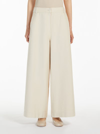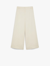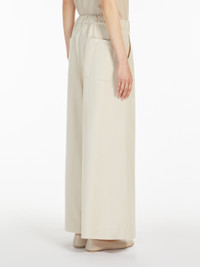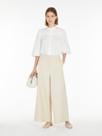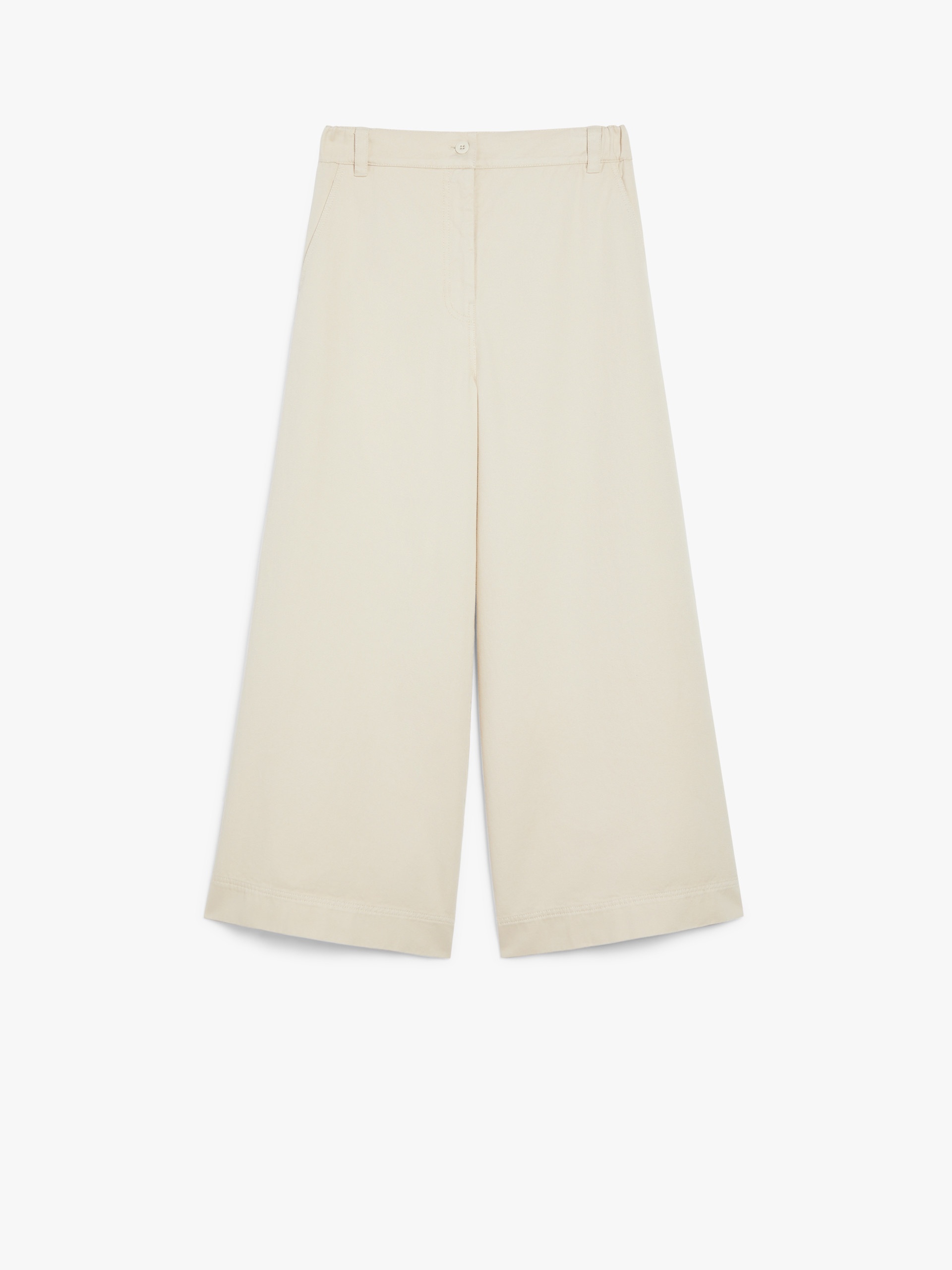 DETAILS Wide-leg trousers in pure cotton drill fabric featuring an elasticated waistband and belt loop detail. Slant side pockets and patch rear pockets, complete with button loop and button detail. High-cut waistband, complete with a fly-covered zip and button fastening. COMPOSITION AND CARE 100% cotton. Machine wash cold delicate cycle; do not bleach; do not tumble dry; line drying in the shade; cool iron; professionally dry clean perchloroethylene - mild process.; wash the garment while it is fastened.; protect buttons before washing.; turn the articles inside out before washing. Distributed by Max Mara S.r.l., registered office in Reggio Emilia (Italy), Via Giulia Maramotti 4, 42124 (IT)