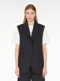 DETAILS Gilet in stretch pure woollen cloth featuring a mannish tailored design with a classic lapel collar, welt breast pocket and flap front pockets. The lined model boasts a central rear vent and visible button-fastening. COMPOSITION AND CARE Fabric 100% virgin wool; lining 50% acetate, 50% viscose. Do not wash; do not bleach; do not tumble dry; cool iron; professionally dry clean perchloroethylene - mild process; do not wet clean. Distributed by Max Mara S.r.l., registered office in Reggio Emilia (Italy), Via Giulia Maramotti 4, 42124 (IT)