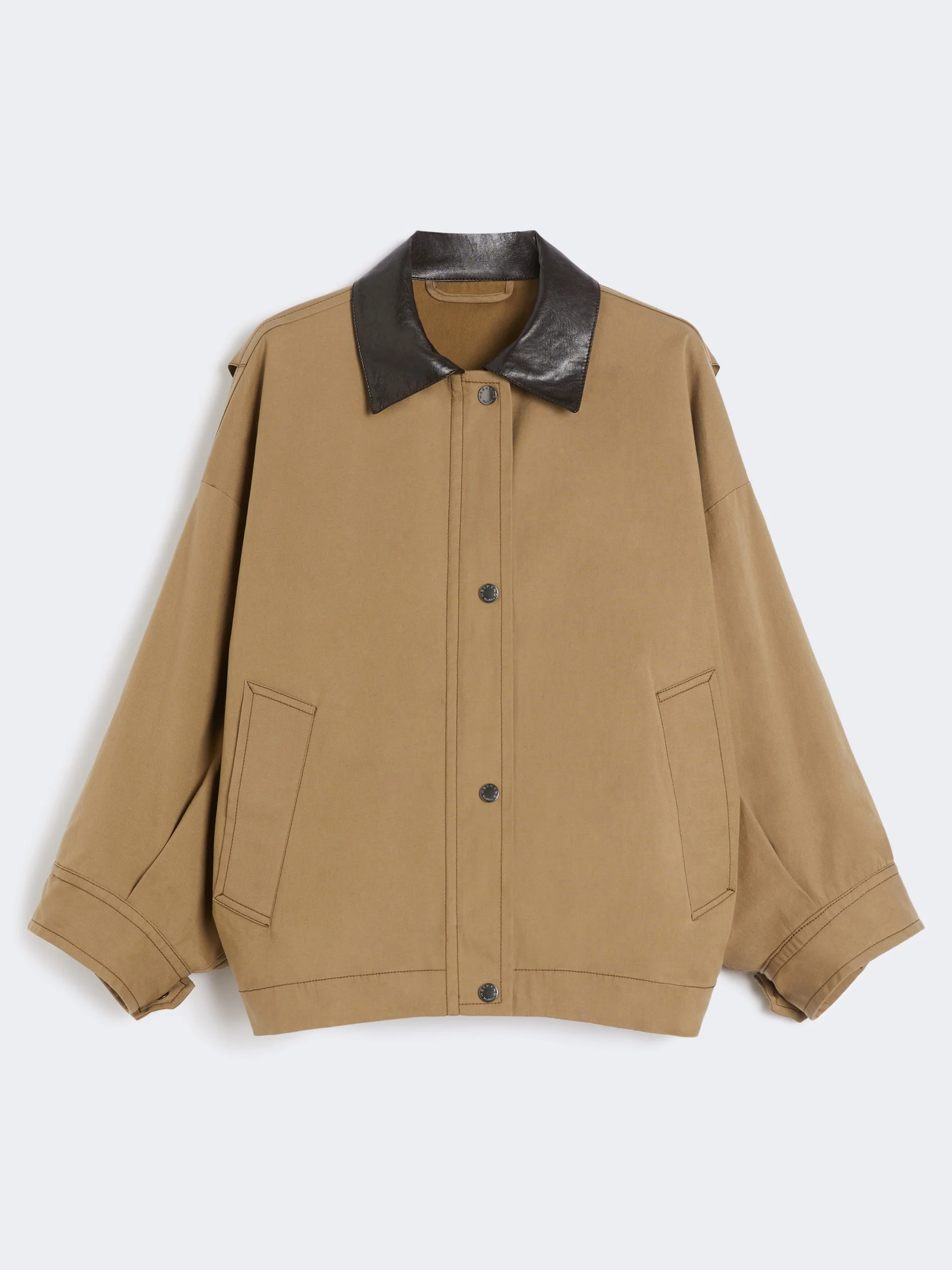 DETAILS Single-breasted jacket featuring a comfort fit defined by the pleated detail on the back and elbows. Jacket in water-repellent technical cotton canvas Coated fabric shirt collar Drop-shoulder sleeves with tab and button detail on the cuffs Zip and branded press-stud fastening on the front Welt side pockets Weekend Max Mara logo print on the yoke lining Half-lined model COMPOSITION AND CARE Fabric 98% cotton, 2% elastane; lining 100% cotton. Hand wash cold (40°c max); do not bleach; do not tumble dry; line drying in the shade; cool iron; professionally dry clean perchloroethylene - mild process; do not wet clean.; protect zipper tongue and slide before cleaning.; protect buttons before washing.; iron with a cloth between. Distributed by Max Mara S.r.l., registered office in Reggio Emilia (Italy), Via Giulia Maramotti 4, 42124 (IT)