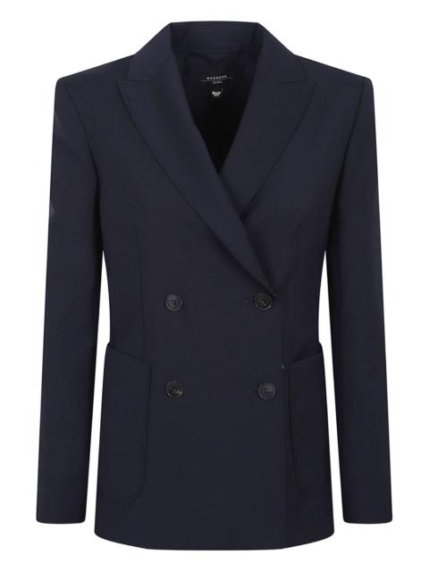double-breasted blazer Highlights - Navy blue - Wool - Double-breasted button fastening - Patch pockets - Peak lapels Made in Italy Composition Wool 100% Washing instructions Read Manufacturer Guidelines