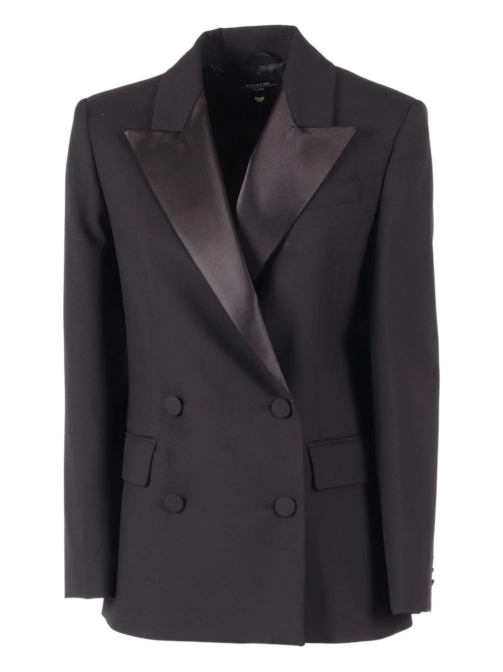 double-breasted jacket Highlights - Black - Double-breasted - Peak lapels - Front flap pockets - Button fastening - Long sleeves Imported Composition Outer: Virgin Wool 100% Lining: Polyester 100%, Bio Acetate 50%, Viscose 50% Washing instructions Read Manufacturer Guidelines