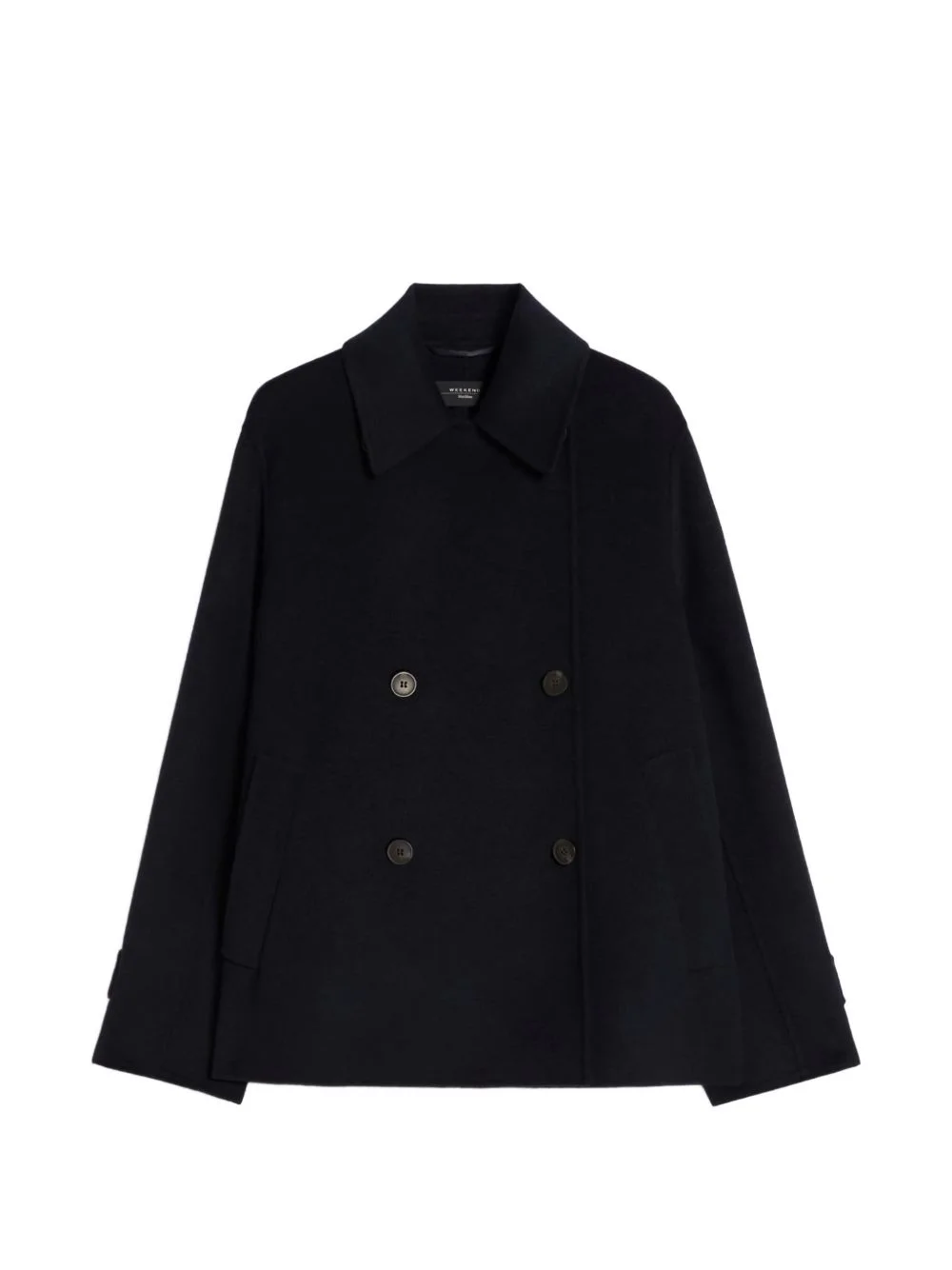 double-breasted short jacket Highlights - Navy blue - Double-breasted - Front button fastening - Long sleeves - Buttoned cuffs - Pointed collar Made in Italy Composition Virgin Wool 90%, Polyamide 10% Washing instructions Read Manufacturer Guidelines