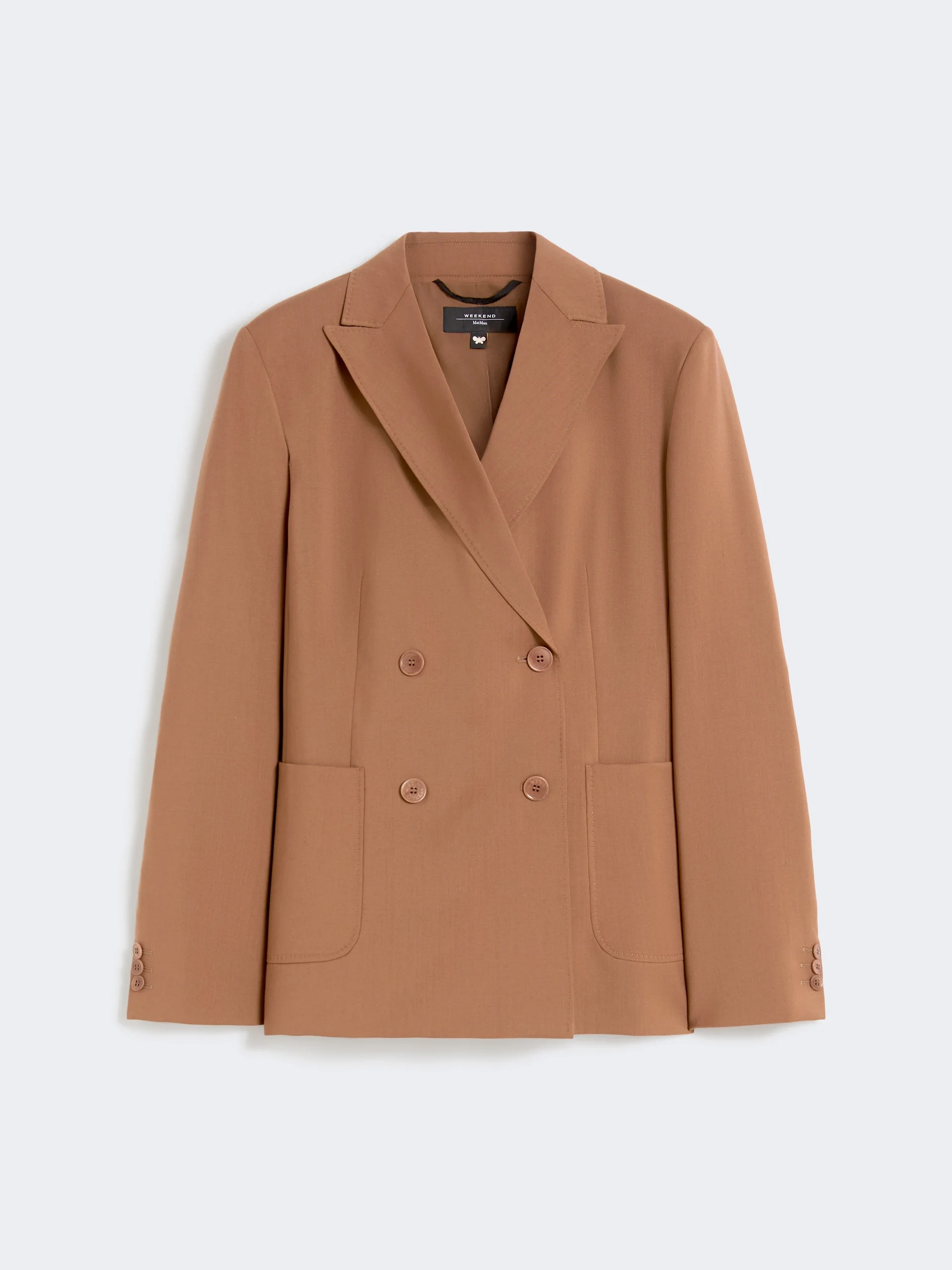 DETAILS Double-breasted blazer with a tailored design and slightly fitted cut. - Blazer in natural stretch pure woollen cloth - Peak-lapel collar - Set-in sleeves with buttoned cuffs - Button fastening - Pockets at the front - Embellished with tailored stitching and a central rear slit - Lined model COMPOSITION AND CARE Fabric 100% virgin wool; lining 100% polyester; sleeves lining 65% acetate, 31% polyamide, 4% elastane. Do not wash; do not bleach; do not tumble dry; cool iron; professionally dry clean perchloroethylene - mild process; do not wet clean.; wash the garment while it is fastened.; contains non-textile parts of animal origin. Distributed by Max Mara S.r.l., registered office in Reggio Emilia (Italy), Via Giulia Maramotti 4, 42124 (IT) Collection: Weekend Max Mara Product code: 5041036106014 - WKDZINNIA