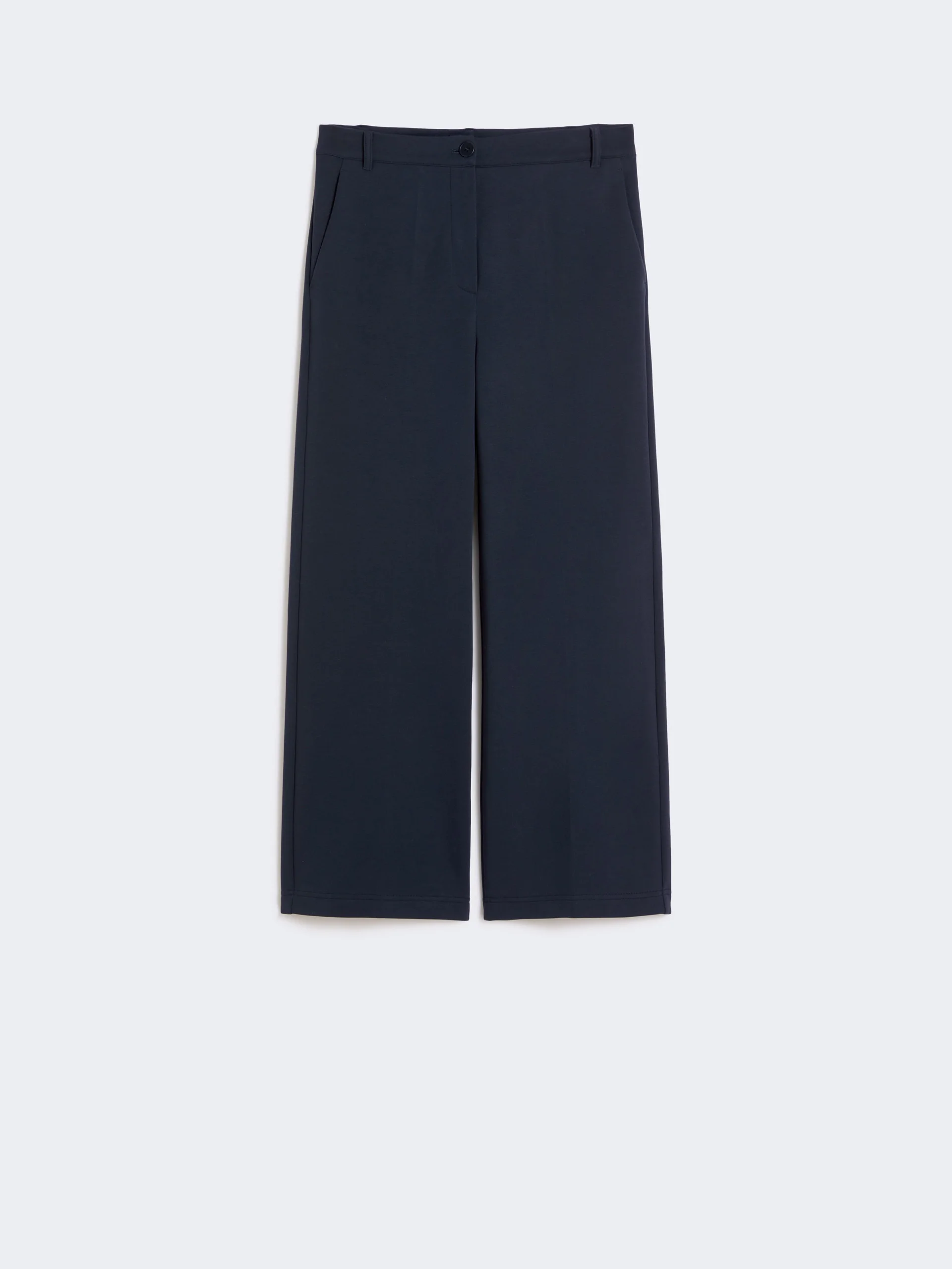 DETAILS Straight-fit cropped ankle-grazer trousers. - Double-faced cotton jersey trousers - Regular fit - Fastening with a wide waistband tab, zip fly and button - Slant side pockets - Belt loops at the waist and sewn darts on the back of the waist COMPOSITION AND CARE 72% cotton, 28% polyester. Do not wash; do not bleach; do not tumble dry; cool iron; professionally dry clean perchloroethylene - mild process; do not wet clean.; iron with a cloth between. Distributed by Max Mara S.r.l., registered office in Reggio Emilia (Italy), Via Giulia Maramotti 4, 42124 (IT) Collection: Weekend Max Mara Product code: 5781046106002 - WKDABANO