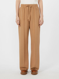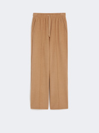 DETAILS Straight-leg trousers with wide hem and elasticated waist. - Trousers made of drap-effect jersey in a wool and cotton blend - Straight cut - Adjustable drawstring at the waist - Side inset pockets - Rib motif stitched on the front - Matching WKND logo embroidered on the left side as worn COMPOSITION AND CARE Jersey fabric 43% polyester, 24% wool, 23% cotton, 10% viscose; - exclusive of embroideries. Hand wash cold (40°c max); do not bleach; do not tumble dry; drip line drying in the shade; cool iron; professionally dry clean perchloroethylene - mild process; do not wet clean.; iron with a cloth between.; using neutral detergent.; don’t rub.; turn the articles inside out before washing.; to be ironed on reverse. Distributed by Max Mara S.r.l., registered office in Reggio Emilia (Italy), Via Giulia Maramotti 4, 42124 (IT) Collection: Weekend Max Mara Product code: 5786025206003 - SPONDA