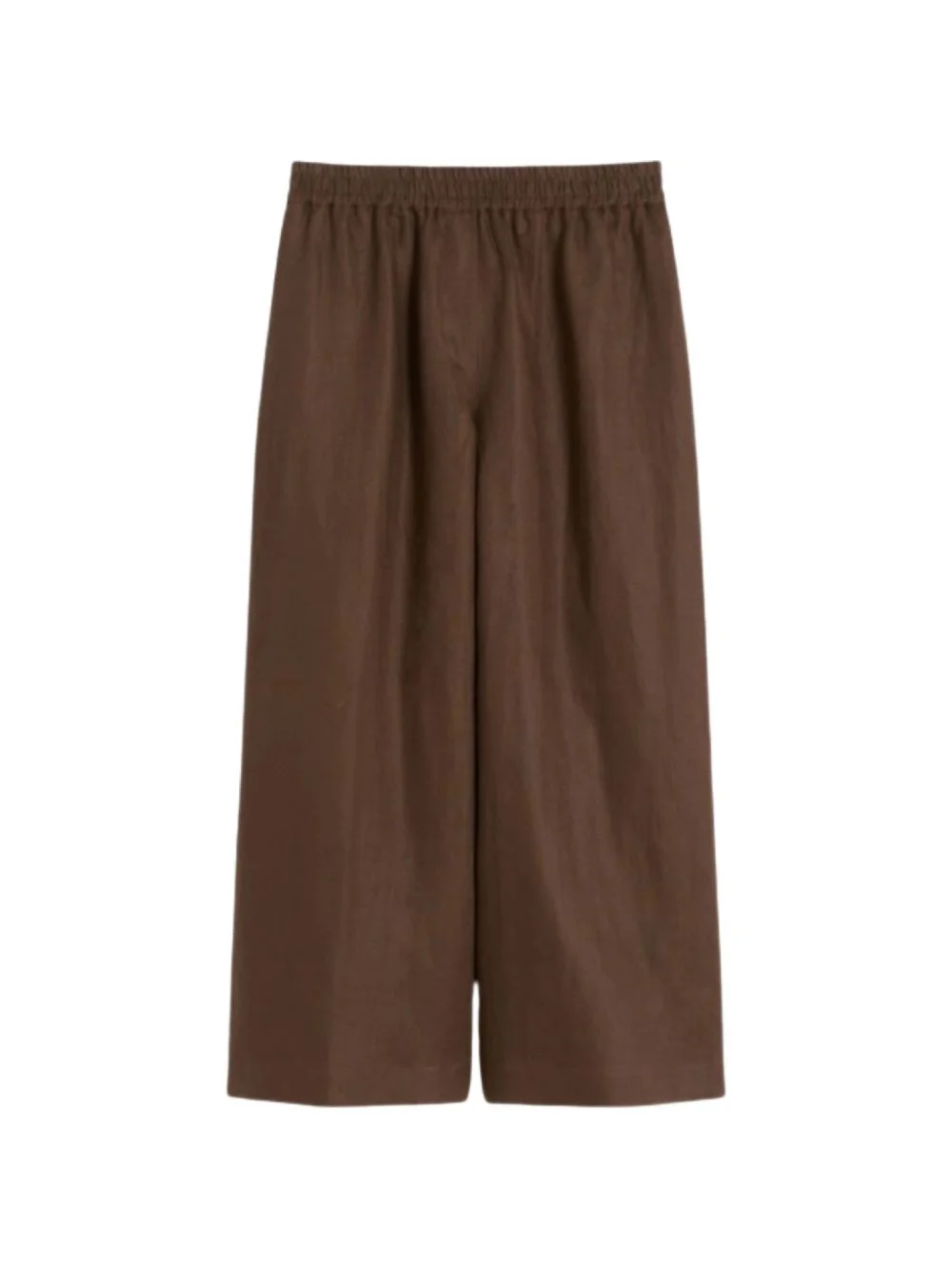 elasticated-waist palazzo pants Highlights - Dark brown - Elasticated waistband - Linen - Wide leg - Slip pockets Imported Composition Linen/Flax 100% Washing instructions Machine Wash