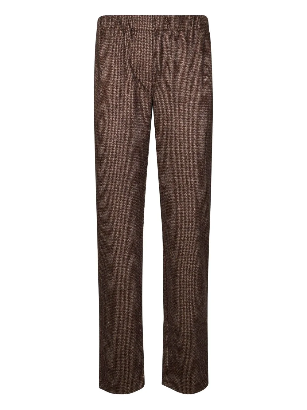 elasticated-waistband straight trousers Highlights - Brown - Elasticated waistband - All-over checked pattern - Straight leg - Welt pockets Imported Composition Fabric 100% Washing instructions Read Manufacturer Guidelines