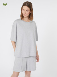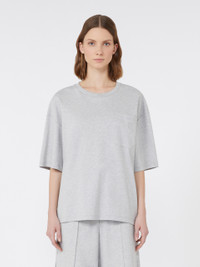 DETAILS Oversized basic T-shirt. Main fabric with cotton fibers, grown and processed according to organic farming systems T-shirt in pure cotton interlock jersey fabric Crew-neck Drop-shoulder short sleeves Branded patch breast pocket Side slit-embellished hem COMPOSITION AND CARE Jersey fabric 100% cotton; - exclusive of embroideries. Machine wash cold delicate cycle; do not bleach; do not tumble dry; flat drying in the shade; cool iron; professionally dry clean perchloroethylene - mild process; professional wet cleaning - very mild process.; iron with a cloth between.; using neutral detergent. Distributed by Max Mara S.r.l., registered office in Reggio Emilia (Italy), Via Giulia Maramotti 4, 42124 (IT)