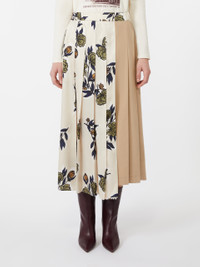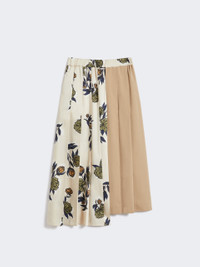 DETAILS Midi skirt with a pleated structure that gives movement to the garment. Patterned twill skirt Plain washed pure cotton gabardine insert Prince of Wales wool twill insert on the back Elasticated waist Side inset pockets Asymmetrical hem Unlined COMPOSITION AND CARE Fabric 100% polyester; fabric 2 100% cotton; fabric 3 54% virgin wool, 44% polyester, 2% elastane. Do not wash; do not bleach; do not tumble dry; cool iron; professionally dry clean perchloroethylene - mild process; do not wet clean. Distributed by Max Mara S.r.l., registered office in Reggio Emilia (Italy), Via Giulia Maramotti 4, 42124 (IT)