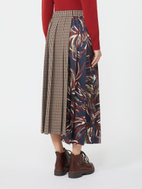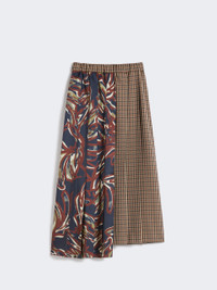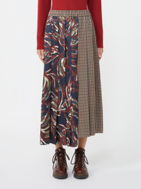 DETAILS Midi skirt with a pleated structure that gives movement to the garment. Houndstooth wool blend basketweave skirt Printed twill side insert Elasticated waist Side inset pockets Off-centre slit at the hem, front and back Asymmetrical hem COMPOSITION AND CARE Fabric 55% virgin wool, 45% cotton; fabric 2 100% polyester. Do not wash; do not bleach; do not tumble dry; cool iron; professionally dry clean perchloroethylene - mild process; do not wet clean. Distributed by Max Mara S.r.l., registered office in Reggio Emilia (Italy), Via Giulia Maramotti 4, 42124 (IT)