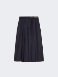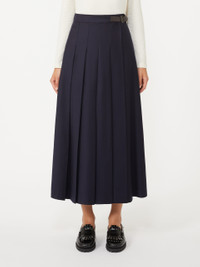 DETAILS Long skirt with a wrap silhouette and pleated motif on the front and back. Soft wool flannel skirt Flared Closure with strap and buckle on the left side Side inset pockets Side slits at the hem Unlined COMPOSITION AND CARE 99% virgin wool, 1% elastane. Do not wash; do not bleach; do not tumble dry; cool iron; professionally dry clean perchloroethylene - mild process; do not wet clean.; put this item into a string bag before washing it.; wash the garment while it is fastened.; protect the buckle before washing. Distributed by Max Mara S.r.l., registered office in Reggio Emilia (Italy), Via Giulia Maramotti 4, 42124 (IT)