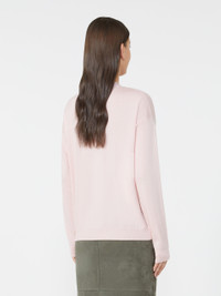DETAILS Jumper with a loose fit and comfortable texture. Combed wool and cashmere knit jumper V neck Long sleeves with dropped shoulders Ribbed trim COMPOSITION AND CARE 90% virgin wool, 10% cashmere. Hand wash cold (40°c max); do not bleach; do not tumble dry; flat drying in the shade; cool iron; professionally dry clean perchloroethylene - mild process; do not wet clean.; using neutral detergent.; iron with a cloth between. Distributed by Max Mara S.r.l., registered office in Reggio Emilia (Italy), Via Giulia Maramotti 4, 42124 (IT)