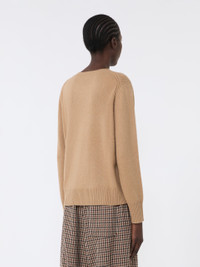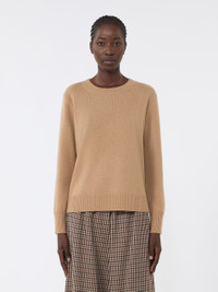 DETAILS Basic jumper with regular fit and length. Pure cashmere yarn jumper Loose silhouette Crew neck Long set-in sleeves Ribbed trim COMPOSITION AND CARE Knitted fabric 100% cashmere; joining thread except joining thread. Hand wash cold (40°c max); do not bleach; do not tumble dry; flat drying in the shade; cool iron; professionally dry clean perchloroethylene - mild process; do not wet clean.; using neutral detergent.; iron with a cloth between. Distributed by Max Mara S.r.l., registered office in Reggio Emilia (Italy), Via Giulia Maramotti 4, 42124 (IT)