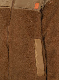 fleece oversized jacket Highlights - Camel brown - Jersey fleece - Front two-way zip fastening - Long sleeves Imported Composition Outer: Polyethylene 70%, Polyester 70%, Virgin Wool 30%, Cotton 30% Lining: Goose Down 100% Washing instructions Read Manufacturer Guidelines