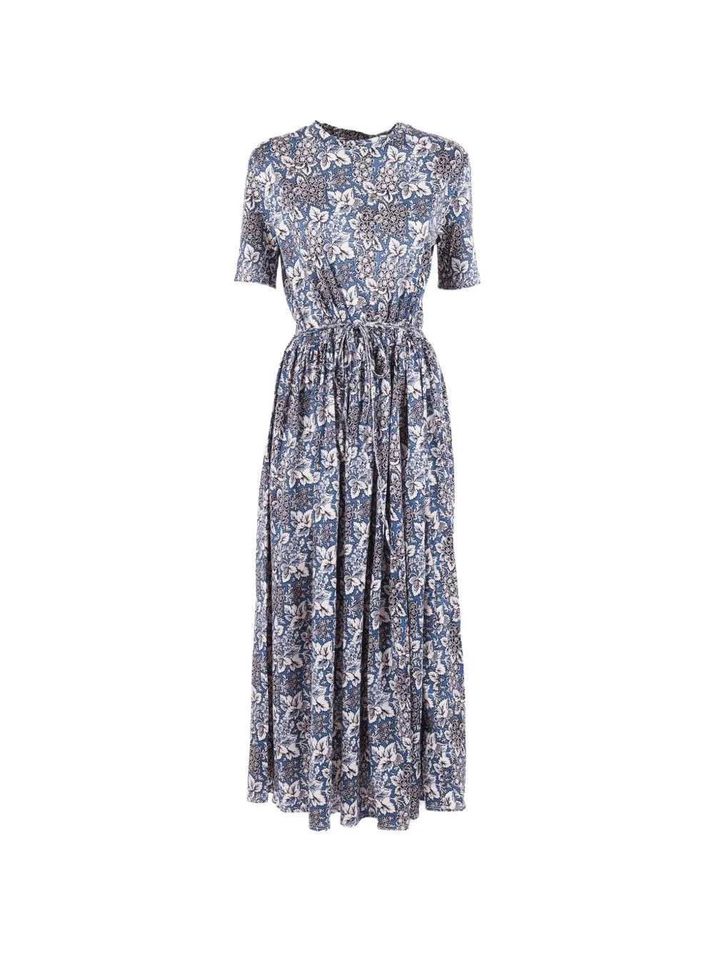 floral dress Highlights - Light blue - Floral print - Short sleeves - Drawstring Imported Composition Cotton 100% Washing instructions Read Manufacturer Guidelines
