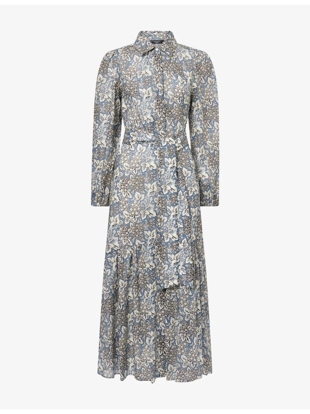 PRODUCT DETAILS - Weekend Max Mara cotton maxi dress - 100% cotton - Button fastening - Regular fit, collar, long sleeves, elasticated sleeve hems, self-tie at waist, floral pattern, flared hem, detachable slip dress - Machine wash cold - True to size - Size UK 8: length 54in / 137cm - Model is 5ft 10in/1.78m and wears a size UK 8 - Lightweight, non-stretch Ref: R04585255