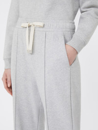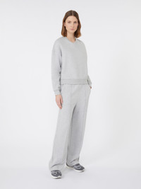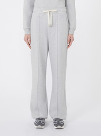 DETAILS Soft-textured trousers featuring a wide leg and sewn pleat detail on the front. Main fabric with at least 50% cotton fibers, grown and processed according to organic farming systems Organic cotton fleece trousers Wide, comfort fit Drawstring-adjustable elasticated waist Slant side pockets Embroidered butterfly logo on the left side COMPOSITION AND CARE Jersey fabric 87% cotton, 13% polyester; - exclusive of embroideries. Machine wash cold delicate cycle; do not bleach; do not tumble dry; flat drying in the shade; cool iron; professionally dry clean perchloroethylene - mild process; professional wet cleaning - very mild process.; iron with a cloth between.; using neutral detergent.; turn the articles inside out before washing.; to be ironed on reverse. Distributed by Max Mara S.r.l., registered office in Reggio Emilia (Italy), Via Giulia Maramotti 4, 42124 (IT)