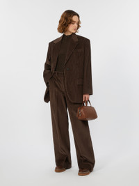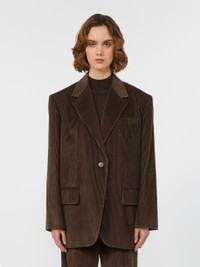 DETAILS Single-breasted, menswear-inspired blazer with a distinctive oversize volume. Nine-wale pure cotton corduroy blazer Straight lines and central slit at the back Lapel collar Set-in sleeves with button at the hem Single button fastening at the front Chest pocket and pockets with applied flap on the front Lined COMPOSITION AND CARE Fabric 100% cotton; lining 50% acetate, 50% viscose. Do not wash; do not bleach; do not tumble dry; cool iron; professionally dry clean perchloroethylene - mild process; do not wet clean.; wash the garment while it is fastened.; contains non-textile parts of animal origin. Distributed by Max Mara S.r.l., registered office in Reggio Emilia (Italy), Via Giulia Maramotti 4, 42124 (IT)