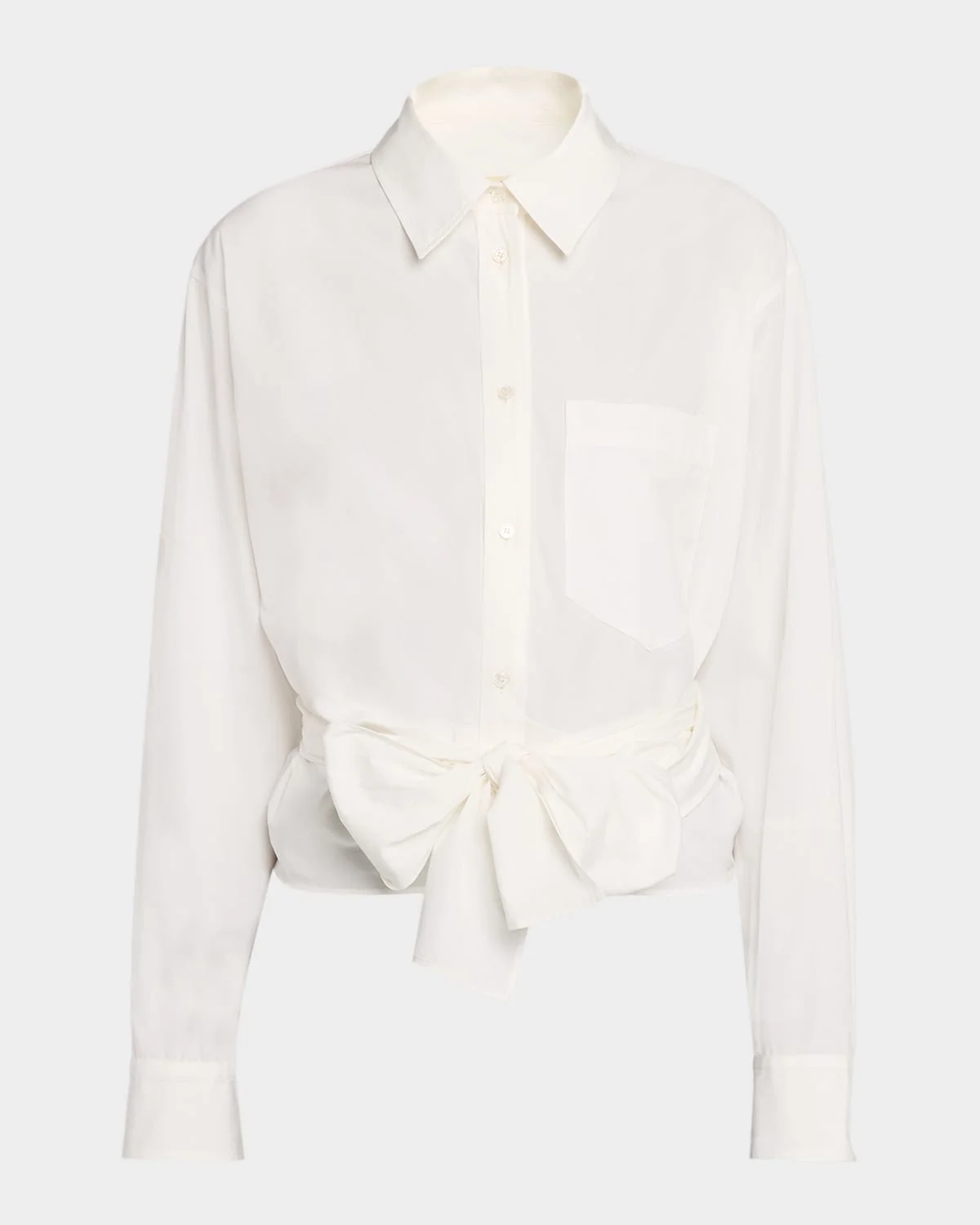 Fresco Draped Waist-Tie Cotton Poplin Shirt