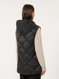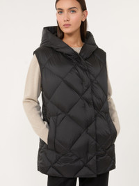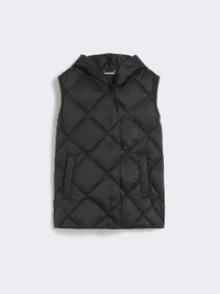 DETAILS Hooded gilet, customised with butterfly emblem on the back of the neck. Gilet in water-repellent tech fabric Regular fit Armhole with grosgrain ribbon trim Front fastening with snap buttons Welt pockets on the sides Goose-down padding COMPOSITION AND CARE Fabric 100% polyester; lining 100% polyester; - exclusive of decoration; with quilting virgin down. Machine wash cold delicate cycle; do not bleach; do not tumble dry; line drying in the shade; cool iron; professionally dry clean perchloroethylene - mild process.; home washing: wash in lukewarm water with a gentle wash machine program. use liquid detergent with neuter ph. rinse several times until clear water is discharged. dry away from direct heating. squeeze and stretch to favor volume recovery.; wash the garment while it is fastened.; don’t iron the labels.; contains non-textile parts of animal origin. Distributed by Max Mara S.r.l., registered office in Reggio Emilia (Italy), Via Giulia Maramotti 4, 42124 (IT)