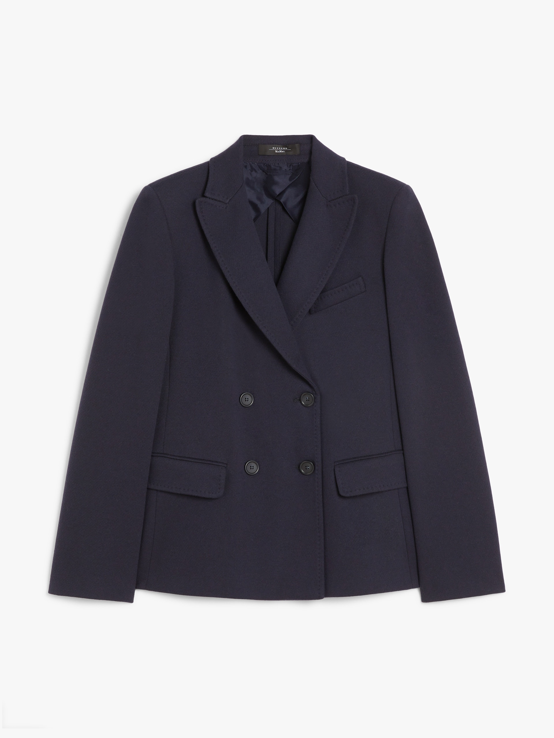 DETAILS Double-breasted blazer in jacquard-patterned soft jersey fabric featuring a regular fit that cinches slightly at the waist. The half-lined model boasts a peak-lapel collar, breast pocket and flap front pockets. Button fastening. COMPOSITION AND CARE Jersey fabric 59% polyester, 40% cotton, 1% elastane; lining 62% acetate, 38% polyester. Do not wash; do not bleach; do not tumble dry; cool iron; professionally dry clean perchloroethylene - mild process; do not wet clean.; iron with a cloth between. Distributed by Max Mara S.r.l., registered office in Reggio Emilia (Italy), Via Giulia Maramotti 4, 42124 (IT)