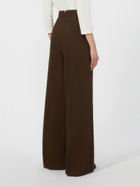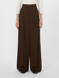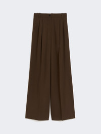 DETAILS Wide leg, high-waisted trousers with double pleats at the waist on the front. Pure wool twill trousers Wide leg Fastening with a wide waistband tab, zip fly and button Slant pockets at the sides Belt loops and trouser crease COMPOSITION AND CARE 100% virgin wool. Do not wash; do not bleach; do not tumble dry; cool iron; professionally dry clean perchloroethylene - mild process; do not wet clean.; wash the garment while it is fastened.; turn the articles inside out before washing. Distributed by Max Mara S.r.l., registered office in Reggio Emilia (Italy), Via Giulia Maramotti 4, 42124 (IT)