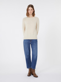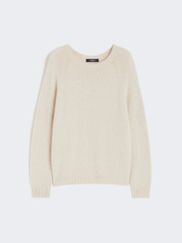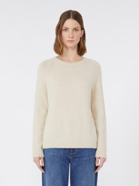DETAILS Relaxed-fit basic sweater. Alpaca and cotton yarn sweater Crew-neck Long raglan sleeves Medium length Rib-knit trims COMPOSITION AND CARE 45% alpaca, 23% polyamide, 15% cotton, 15% modal, 2% elastane. Hand wash cold; do not bleach; do not tumble dry; flat drying in the shade; cool iron; professionally dry clean perchloroethylene - mild process; do not wet clean.; iron with a cloth between.; using neutral detergent. Distributed by Max Mara S.r.l., registered office in Reggio Emilia (Italy), Via Giulia Maramotti 4, 42124 (IT)