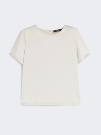 DETAILS Straight-fit T-shirt featuring contrasting-textured details. Satin T-shirt Back in lyocell and viscose interlock jersey fabric Crew-neck Short set-in sleeves Small button-fastening keyhole detail at the back COMPOSITION AND CARE Fabric 100% polyester; back 35% polyamide, 27% lyocell, 27% viscose, 11% elastane. Hand wash cold; do not bleach; do not tumble dry; drip line drying in the shade; cool iron; professionally dry clean perchloroethylene - mild process; do not wet clean.; iron with a cloth between.; using neutral detergent.; don’t rub.; turn the articles inside out before washing.; to be ironed on reverse. Distributed by Max Mara S.r.l., registered office in Reggio Emilia (Italy), Via Giulia Maramotti 4, 42124 (IT)