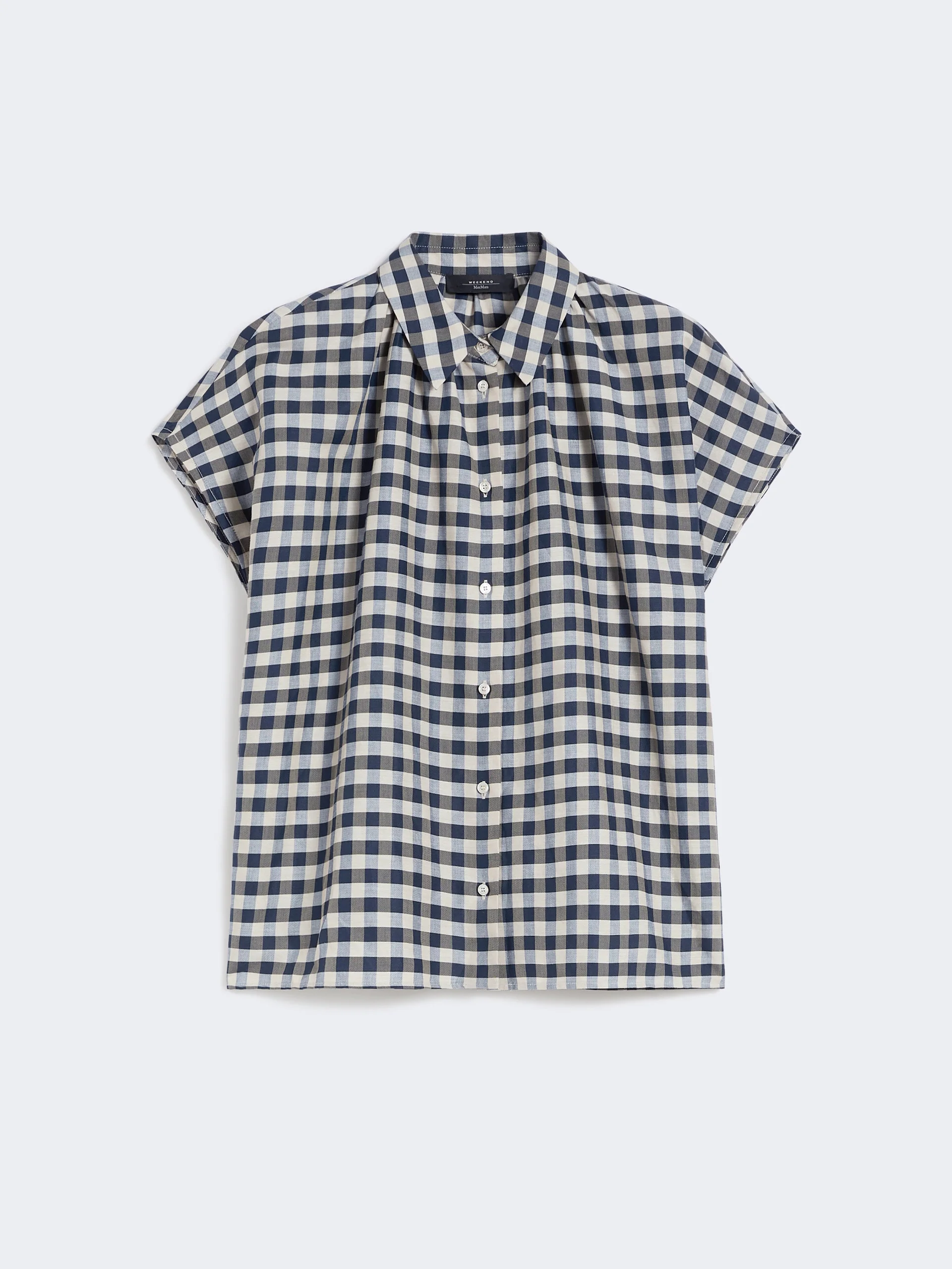 DETAILS Shirt featuring a gathered motif on the collar, designed to give volume and movement to the silhouette. - Boxy fit - Cotton and ramie batavia shirt - Shirt collar - Cap sleeves - Front fastening with visible buttons - Straight hem with side slits COMPOSITION AND CARE 59% cotton, 41% ramie. Hand wash cold (40°c max); do not bleach; do not tumble dry; line drying in the shade; cool iron; professionally dry clean perchloroethylene - mild process; do not wet clean.; wash the garment while it is fastened.; turn the articles inside out before washing.; contains non-textile parts of animal origin. Distributed by Max Mara S.r.l., registered office in Reggio Emilia (Italy), Via Giulia Maramotti 4, 42124 (IT) Collection: Weekend Max Mara Product code: 5111136206001 - WKDSTRANO