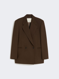 DETAILS Pure wool twill jacket featuring tailoring-style hand-stitched detail. The straight-fit garment boasts slightly oversized shoulders, lapels, long sleeves and a welt breast pocket and pockets. Double-breasted button fastening. Pure wool twill fabric Straight fit Lapel collar Long sleeves Button fastening Welt pockets COMPOSITION AND CARE Fabric 100% virgin wool; lining 50% acetate, 50% viscose; sleeves lining 53% acetate, 47% viscose. Do not wash; do not bleach; do not tumble dry; cool iron; professionally dry clean perchloroethylene - mild process; do not wet clean.; wash the garment while it is fastened.; turn the articles inside out before washing. Distributed by Max Mara S.r.l., registered office in Reggio Emilia (Italy), Via Giulia Maramotti 4, 42124 (IT)