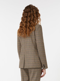 DETAILS Tailored double-breasted blazer in a menswear-inspired pattern, with central vent on the back. Pure wool twill blazer Wrap-around style with side panels and darts at the waist Collar with peak lapels Set-in sleeves with button at the cuff Front fastening with visible buttons Welt pockets with flap applied on the front Lined COMPOSITION AND CARE Fabric 100% virgin wool; lining 50% acetate, 50% viscose; sleeves lining 65% acetate, 31% polyamide, 4% elastane. Do not wash; do not bleach; do not tumble dry; cool iron; professionally dry clean perchloroethylene - mild process; do not wet clean.; wash the garment while it is fastened.; contains non-textile parts of animal origin. Distributed by Max Mara S.r.l., registered office in Reggio Emilia (Italy), Via Giulia Maramotti 4, 42124 (IT)
