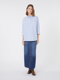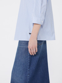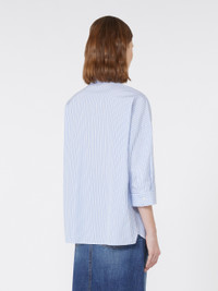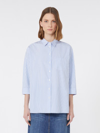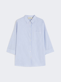 DETAILS Slightly flared shirt featuring a small embroidered butterfly logo at the hem. Main fabric with cotton fibers, grown and processed according to organic farming systems Classic pointed collar Low set-in 3/4 sleeves Mother-of-pearl button fastening on the front Patch breast pocket Button detail on the side of the double cuffs Side slit-embellished rounded hem COMPOSITION AND CARE Fabric 100% cotton; - exclusive of embroideries. Machine wash cold delicate cycle; do not bleach; do not tumble dry; line drying in the shade; cool iron; professionally dry clean perchloroethylene - mild process.; wash the garment while it is fastened.; turn the articles inside out before washing.; contains non-textile parts of animal origin. Distributed by Max Mara S.r.l., registered office in Reggio Emilia (Italy), Via Giulia Maramotti 4, 42124 (IT)