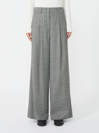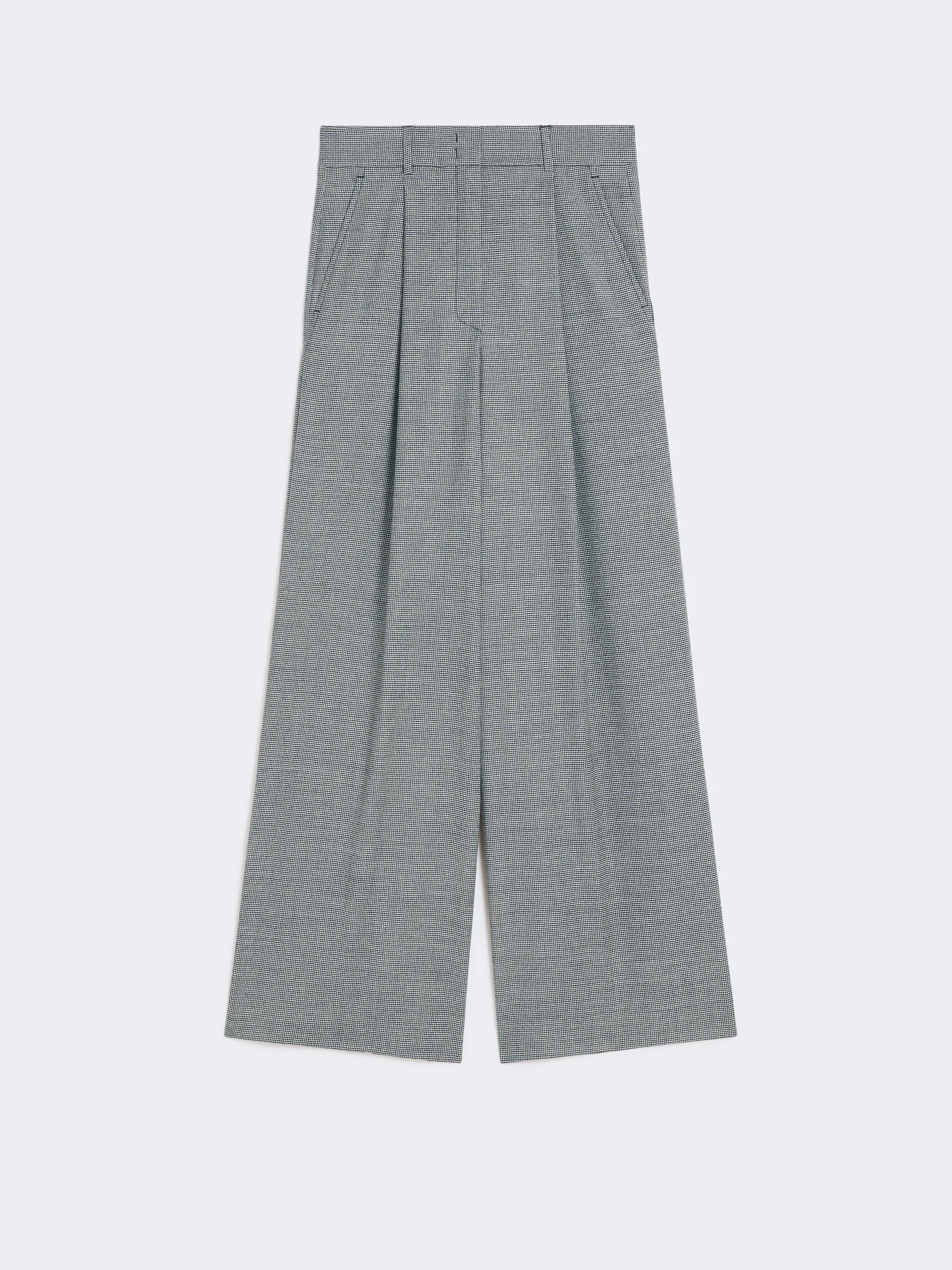 DETAILS Long trousers with a palazzo silhouette and darts at the waist on the front. Stretch wool flannel trousers Relaxed fit with flared leg at the hem Fastening with a wide waistband tab, zip fly and small hook Slant pockets at the sides Welt pockets with button at the back Belt loops at the waist COMPOSITION AND CARE 99% virgin wool, 1% elastane. Do not wash; do not bleach; do not tumble dry; cool iron; professionally dry clean perchloroethylene - mild process; do not wet clean. Distributed by Max Mara S.r.l., registered office in Reggio Emilia (Italy), Via Giulia Maramotti 4, 42124 (IT)