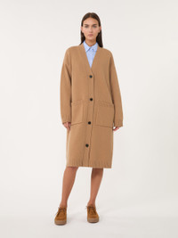 DETAILS Long cardigan with a loose and comfortable fit. Pure wool plain-knit cardigan Oversized fit V neck Long sleeves with dropped shoulders Button fastening at the front Pockets at the front Ribbed trim COMPOSITION AND CARE 100% virgin wool. Hand wash cold (40°c max); do not bleach; do not tumble dry; flat drying in the shade; cool iron; professionally dry clean perchloroethylene - mild process; do not wet clean.; iron with a cloth between.; using neutral detergent. Distributed by Max Mara S.r.l., registered office in Reggio Emilia (Italy), Via Giulia Maramotti 4, 42124 (IT)